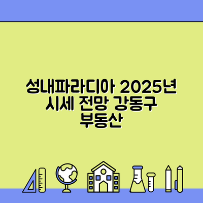 2025년에는 성내동 내 아파트 가격이 경쟁적으로 형성될 수 있으며, 인근의 아파트들과 비교해 볼 때 성내파라디아 아파트는 안정적인 수요를 유지할 것으로 기대됩니다. 따라서, 적절한 시세 분석과 함께 신중한 투자 접근이 필요할 것입니다.