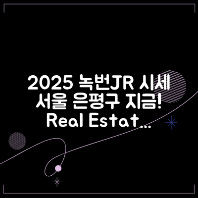 2025년 10월 서울시 은평구 녹번동의 녹번JR 아파트 시세를 파악하는 것은 향후 투자 결정을 위해 필수적입니다.