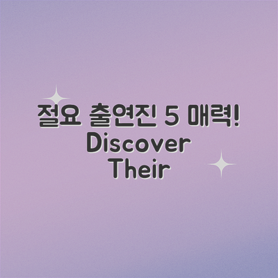드라마 절요의 출연진들은 각각 개성 넘치는 캐릭터들로, 서로 다른 매력으로 시청자들을 사로잡고 있습니다. 여러분은 이 매력을 어떻게 느끼고 계신가요? 아마도 각 배우의 연기를 보는 것만으로도 색다른 재미를 느끼셨을 것 같은데요, 이제 그들의 매력을 하나하나 살펴보겠습니다.