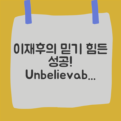여러분, 삶에서 어려운 순간을 마주한 적이 있으신가요? 저도 그랬습니다. 이재후의 이야기는 그런 순간을 극복한 진정한 성공 스토리입니다. 오늘은 그가 어떻게 힘든 상황을 이겨내며 성장했는지 몇 가지 사례를 공유해볼게요.