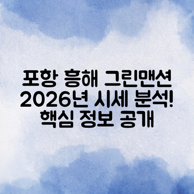 2026년 1월 경상북도 포항시 북구 흥해읍 한미흥해그린맨션 아파트의 시세와 투자 전략을 분석해보겠습니다.