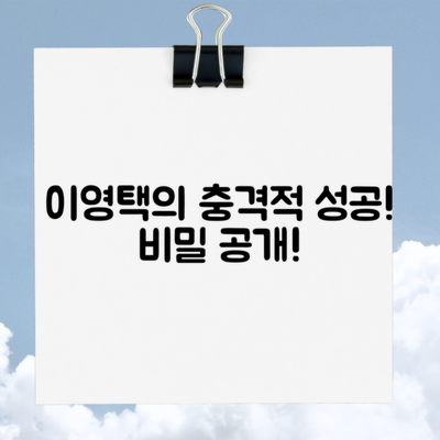 여러분, 이영택 감독의 이야기를 들어보신 적 있나요? 그가 겪은 실패와 성공의 과정을 통해 많은 것을 배우게 될 거예요.