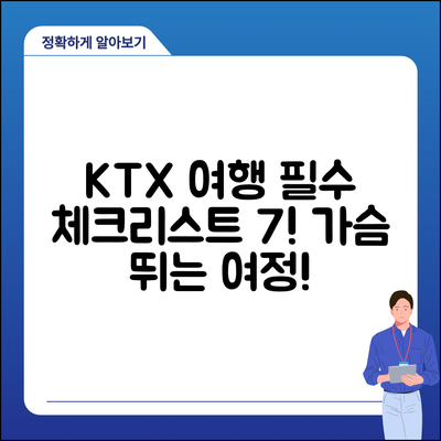 이 체크리스트를 통해 중앙선 KTX 이용 시 필요한 모든 사항을 염두에 두고 안전하고 쾌적한 여행을 즐기세요.