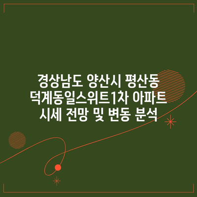 경상남도 양산시 평산동 덕계동일스위트1차 아파트 시세 전망 및 변동 분석
